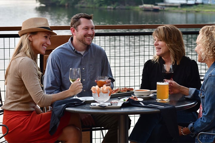 Cook food on hot lava stones at Hot Rocks, located beside the Treehouse property, or enjoy waterfront views of the Wisconsin River at the Boathouse, located within the Vue property.