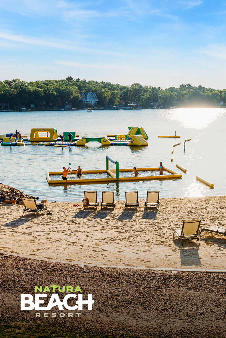 Lounge around a natural lagoon, cozy up to the campfire on the lakefront beach or spend the day with the kids at America’s largest inflatable waterpark set within a state-like park.