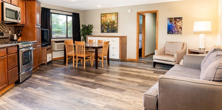 On the Lake Delton beach, make s’mores beneath the stars at the bonfire pit. Kids can let loose on the beachfront playground while you lounge on the soft sand. Hang out in the indoor pool and sauna, or level up in the game room. And don't forget to use your free waterpark tickets at our 150-acre park, Land of Natura, when you stay in the summer.