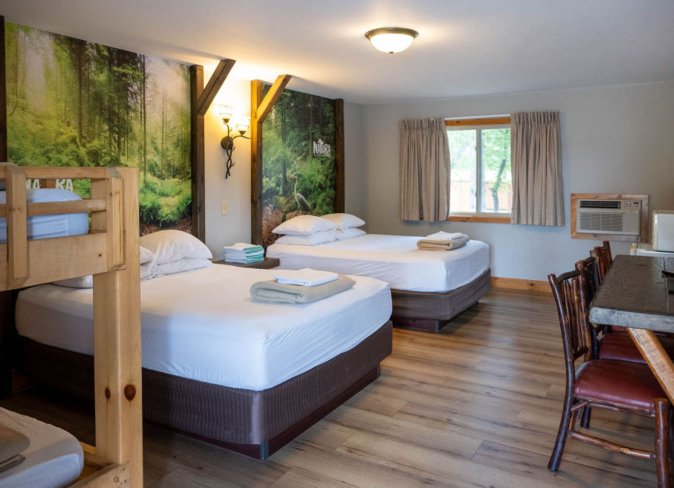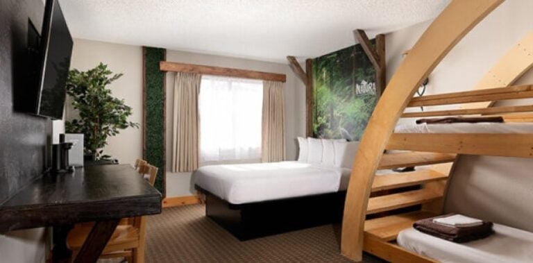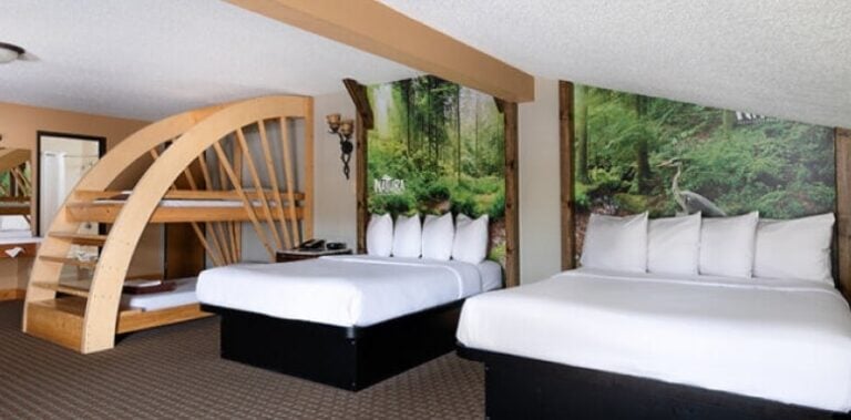Experience the outdoors at this family-friendly, camp-themed Treescape resort in Wisconsin Dells!