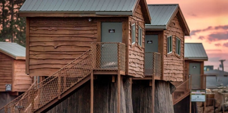 Unique accommodations include treehouses, tiny houses, cabins, getaway homes and family-friendly hotel rooms.